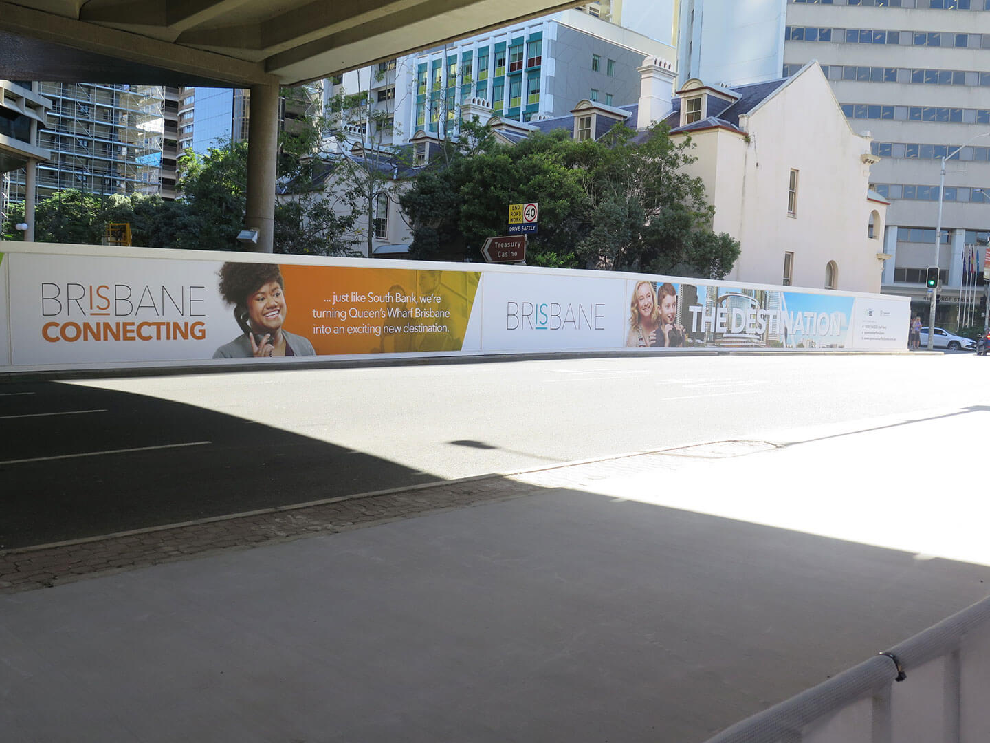 Brisbane’s biggest billboard – stretching in full colour for almost one kilometre around the entire Queen’s Wharf Brisbane construction site – is starting to take shape.